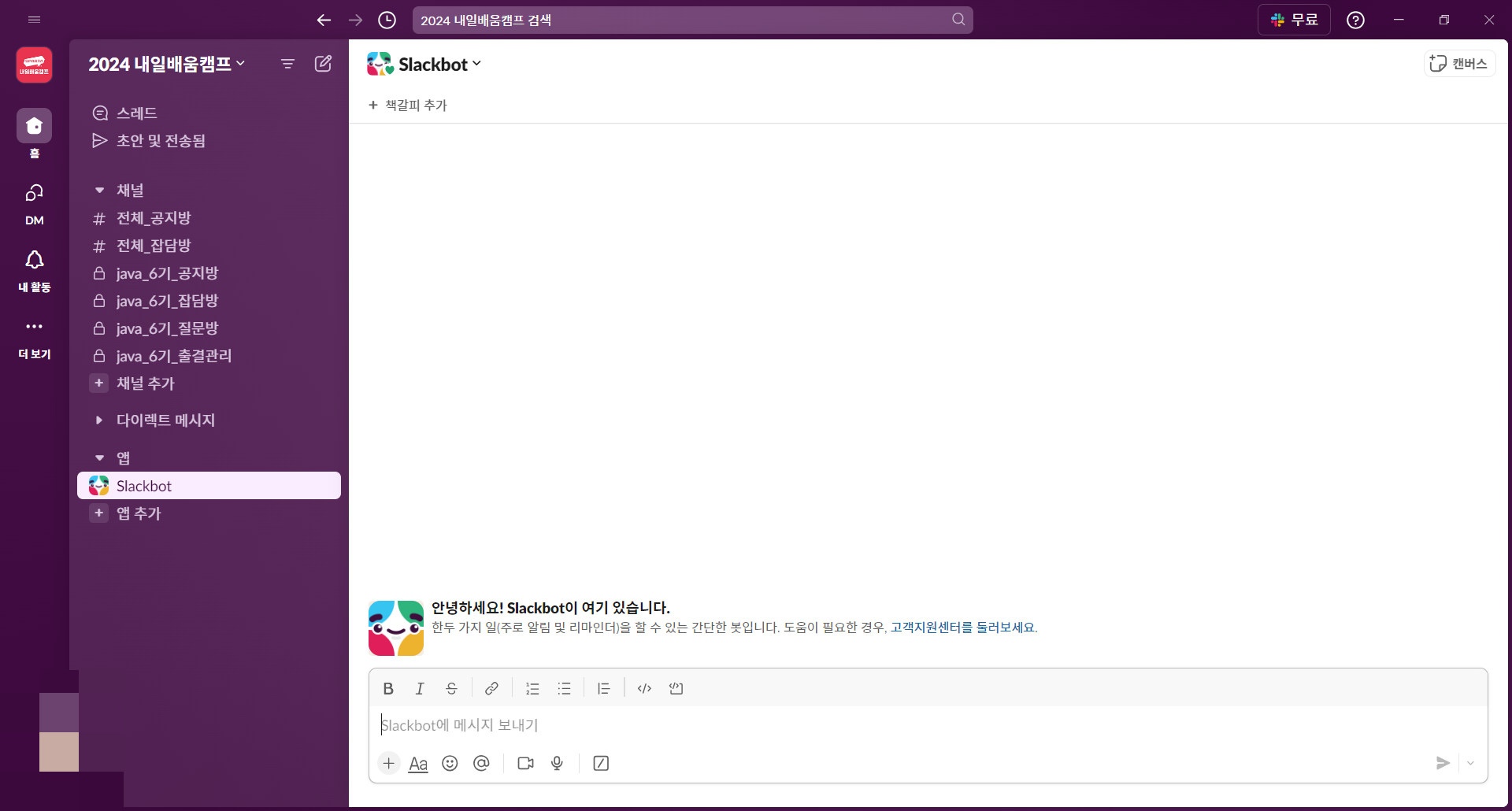 (참고로 슬랙은 관리자가 모든 내용을 볼 수 있다.. 욕하지 말자..)