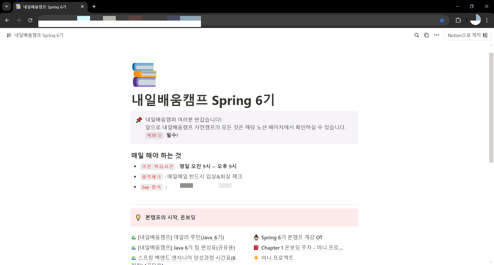 해당 과정에서는 공지문서로 노션을 사용한다