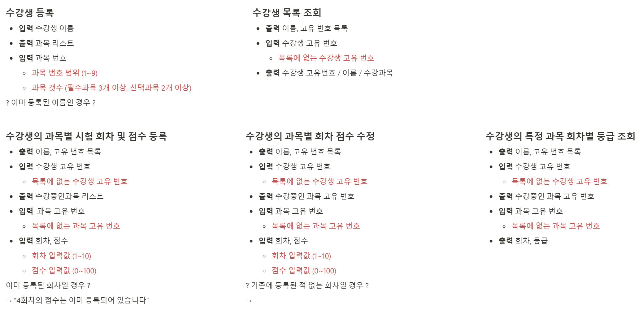 코드를 작성할 때 예외처리, 입출력을 참고할 수 있도록 작성했다