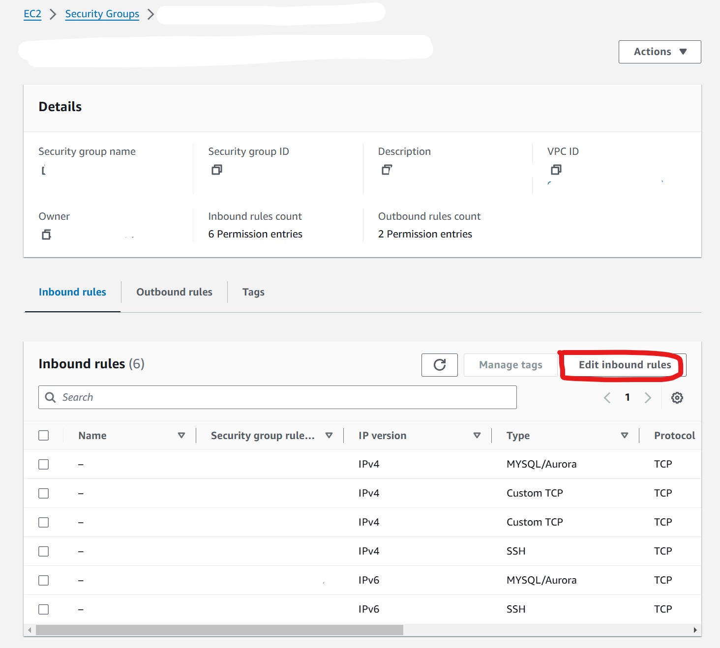 Edit inbound rules 클릭