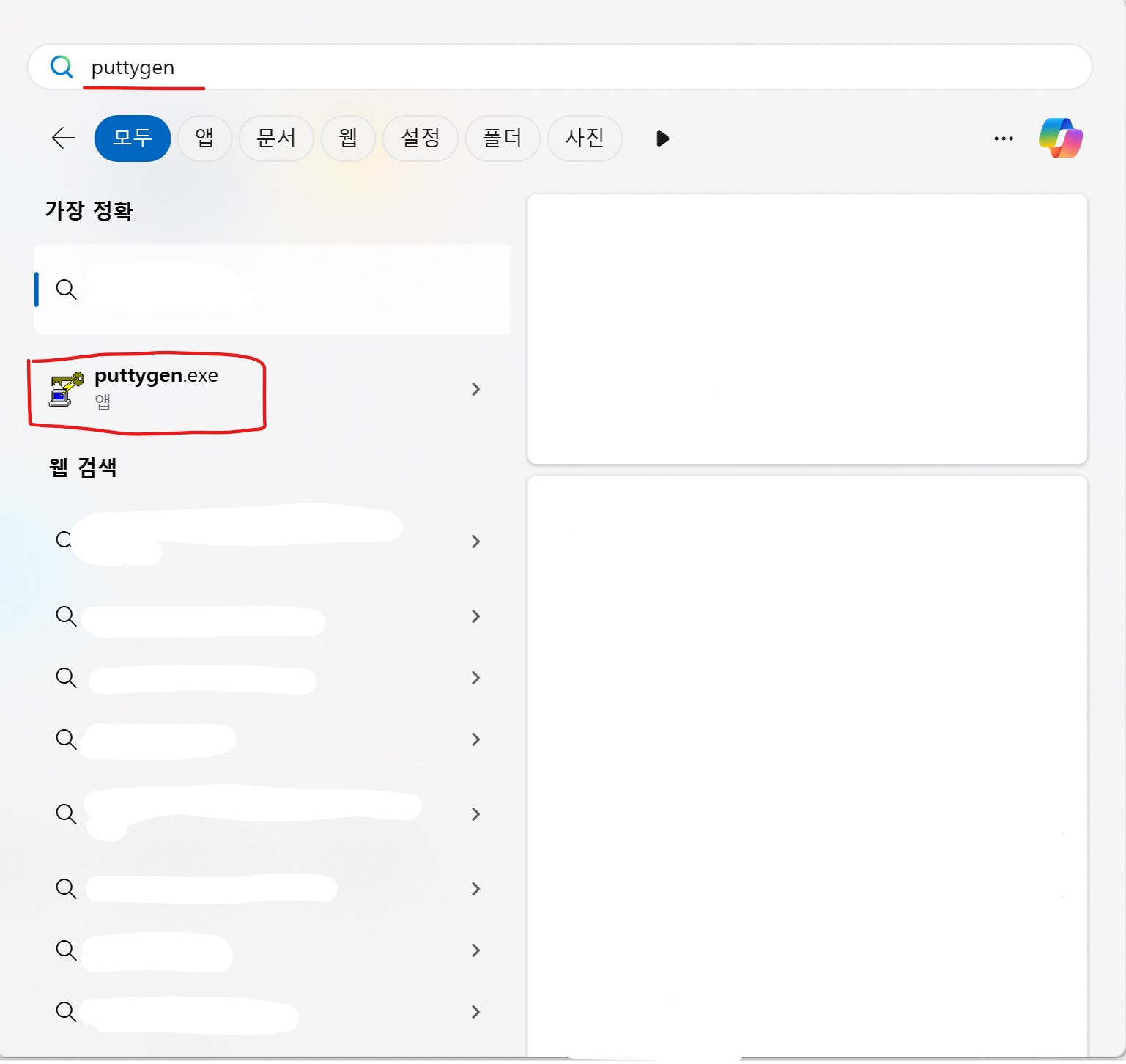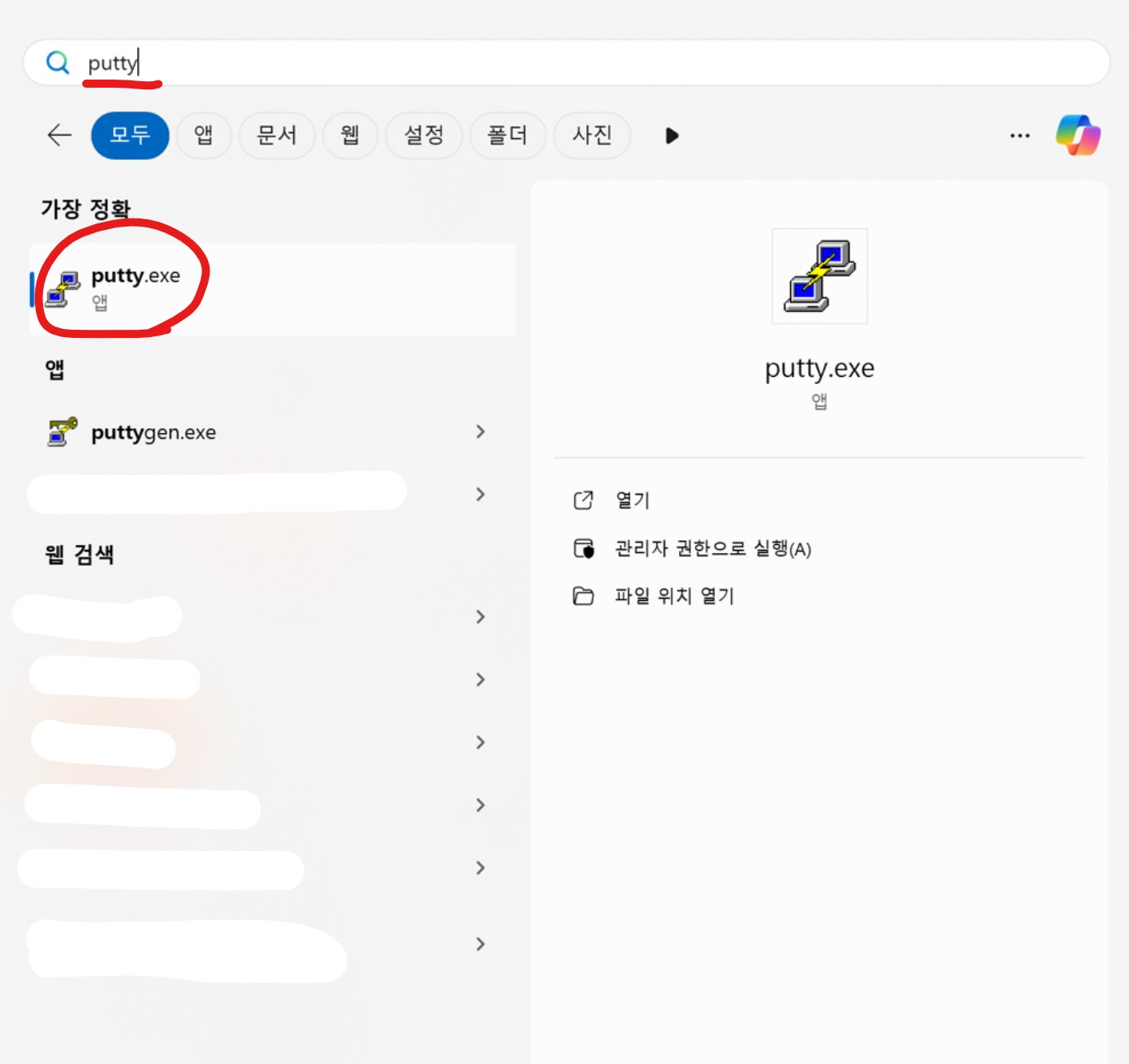 window 검색에 puttygen을 검색하면 설치된 앱이 보인다