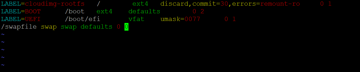 /swapfile swap swap defaults 0 0