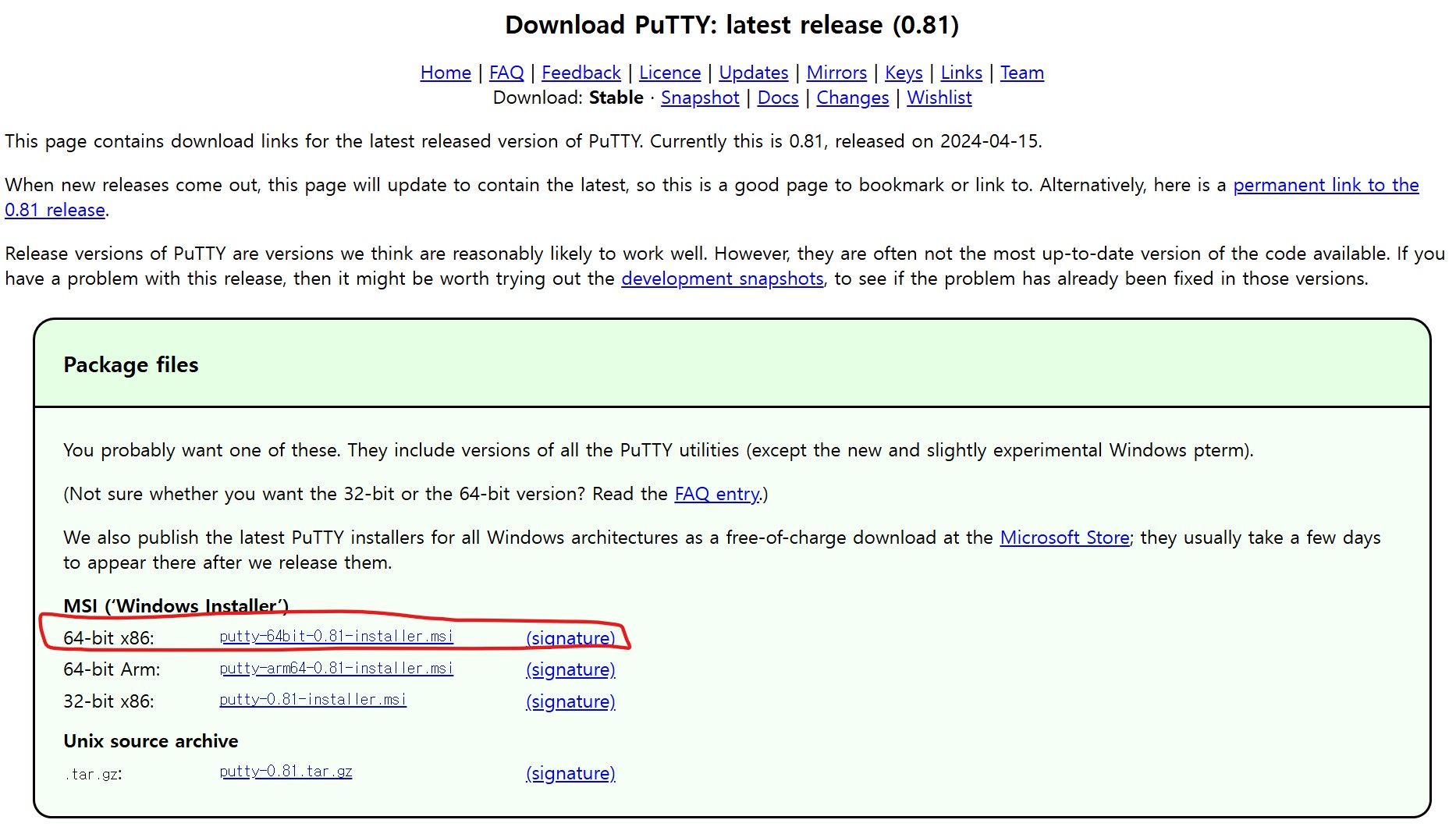 Download PuTTY: latest release (0.81)