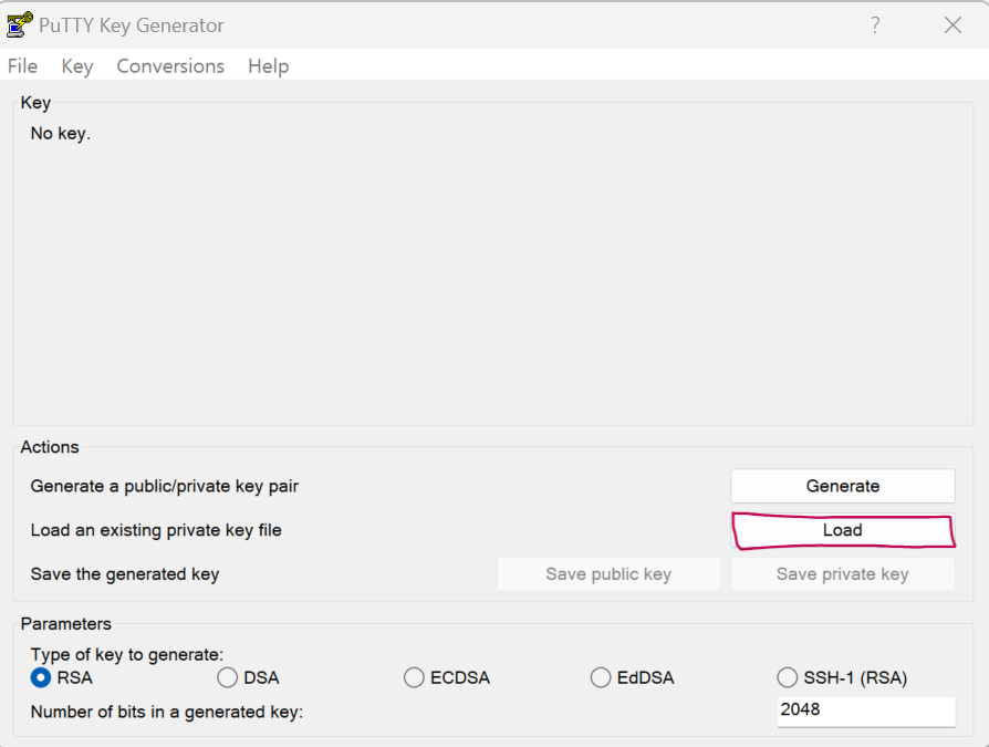 Load를 클릭해 EC2 Instance를 생성할 때 발급받은 .pem을 불러온다